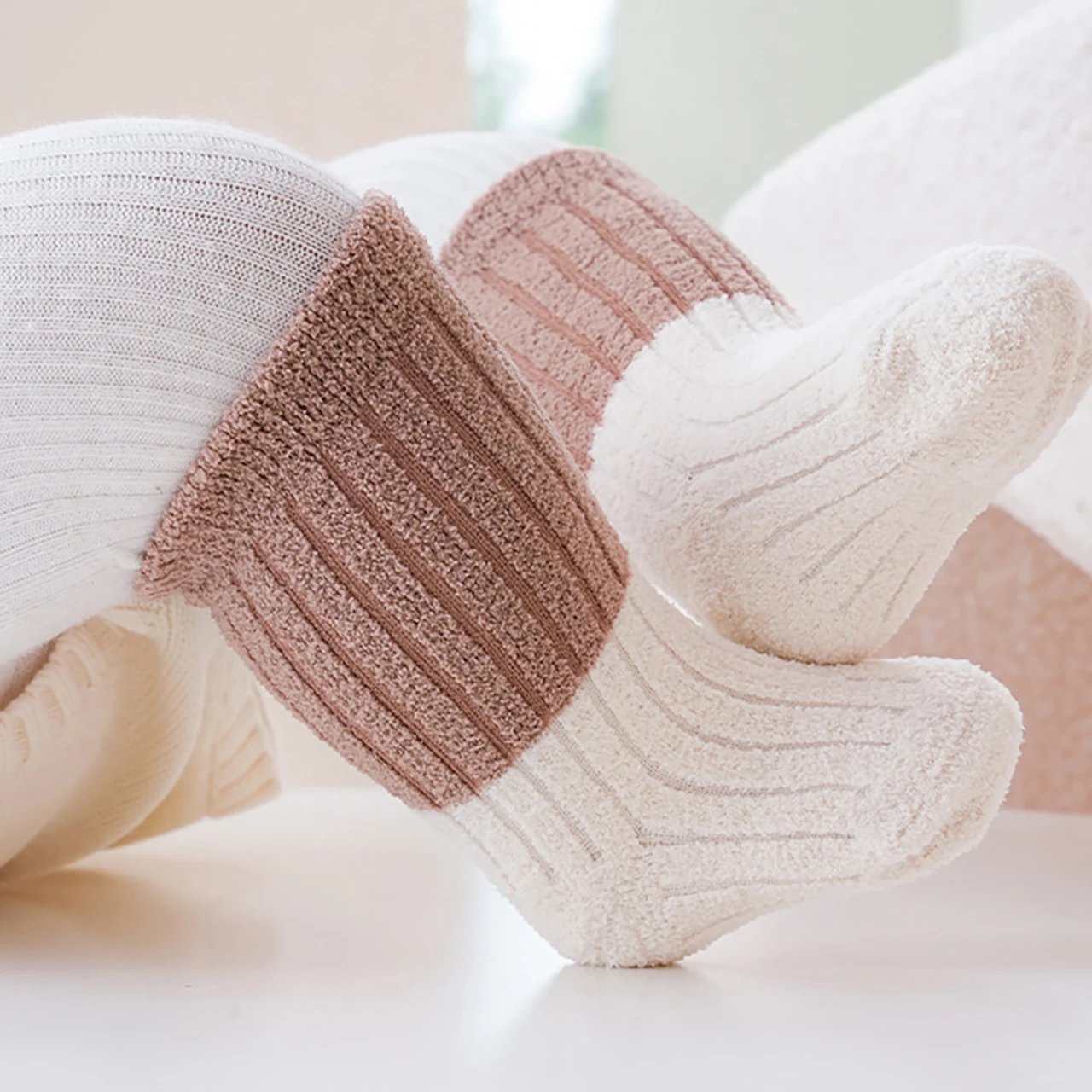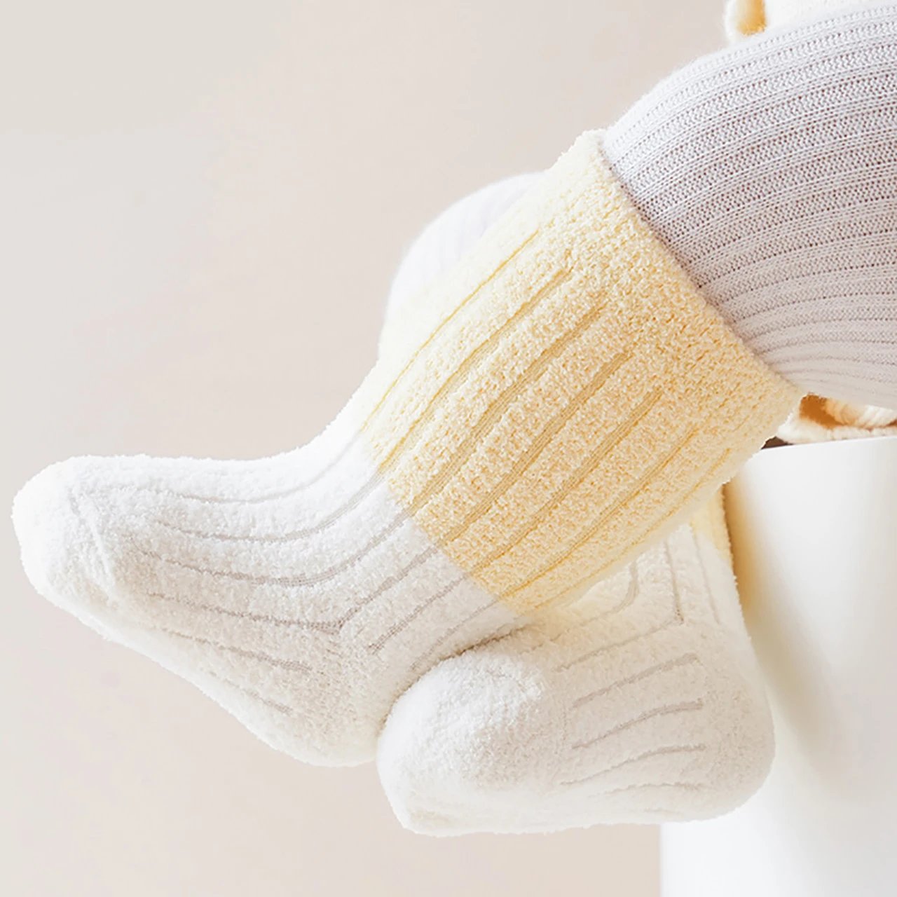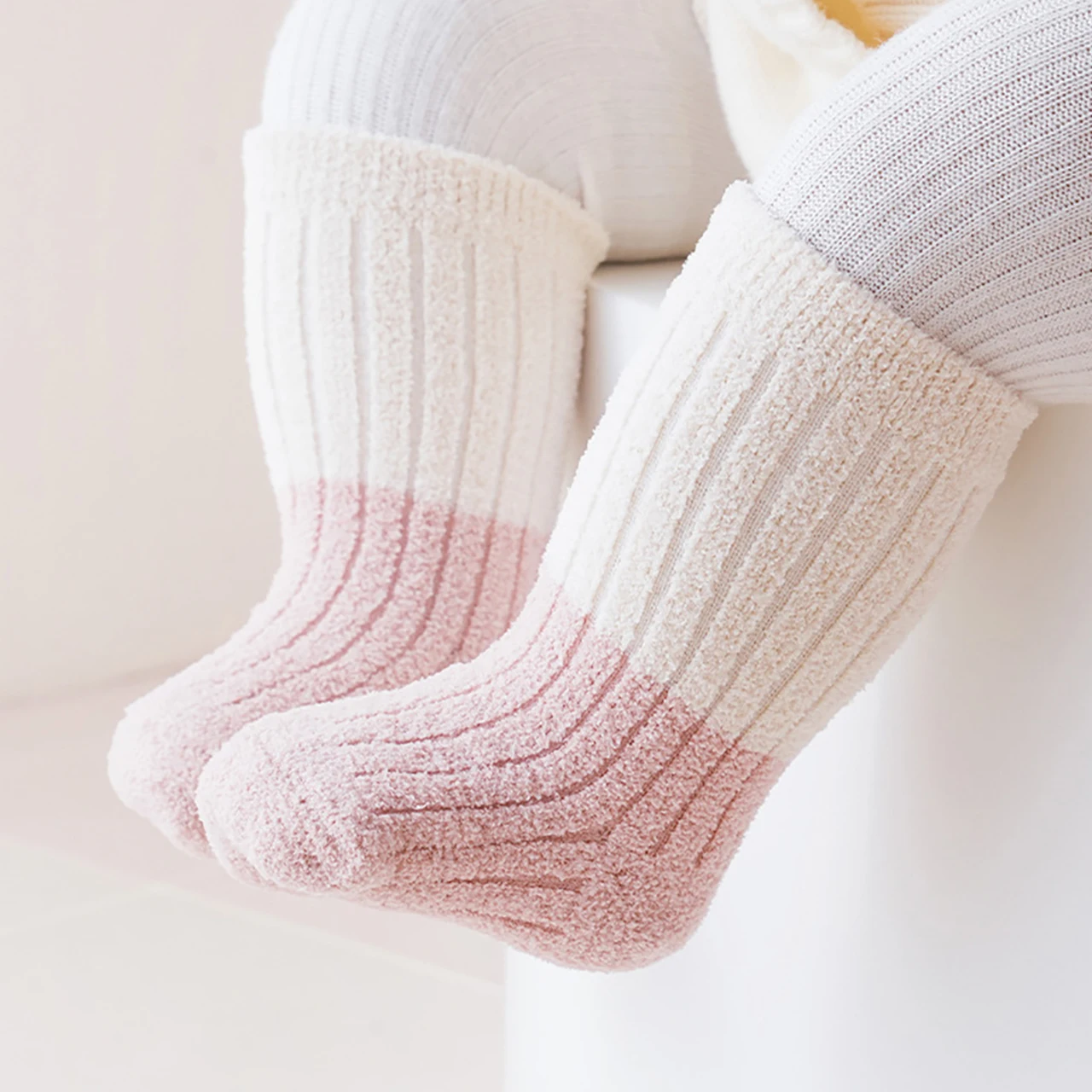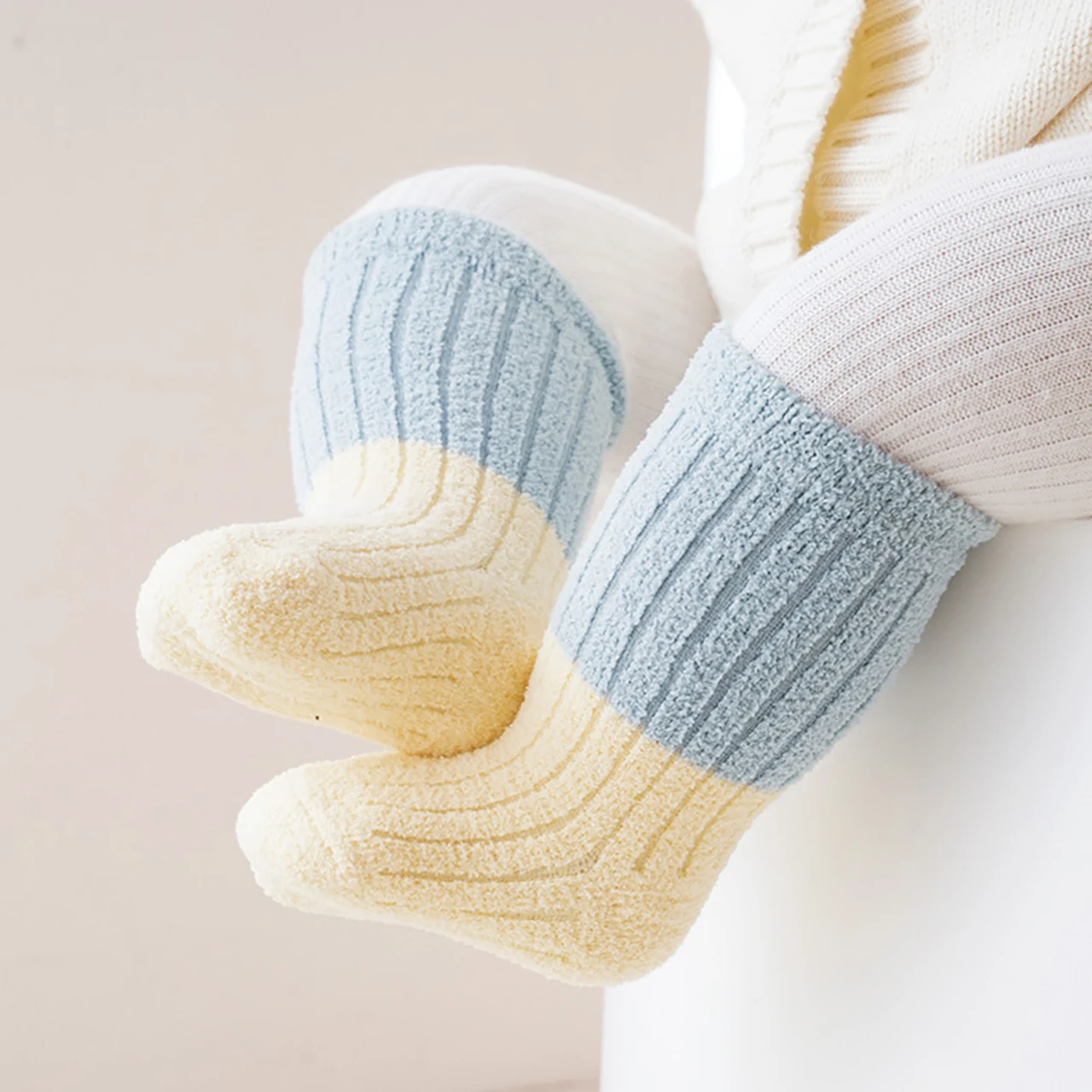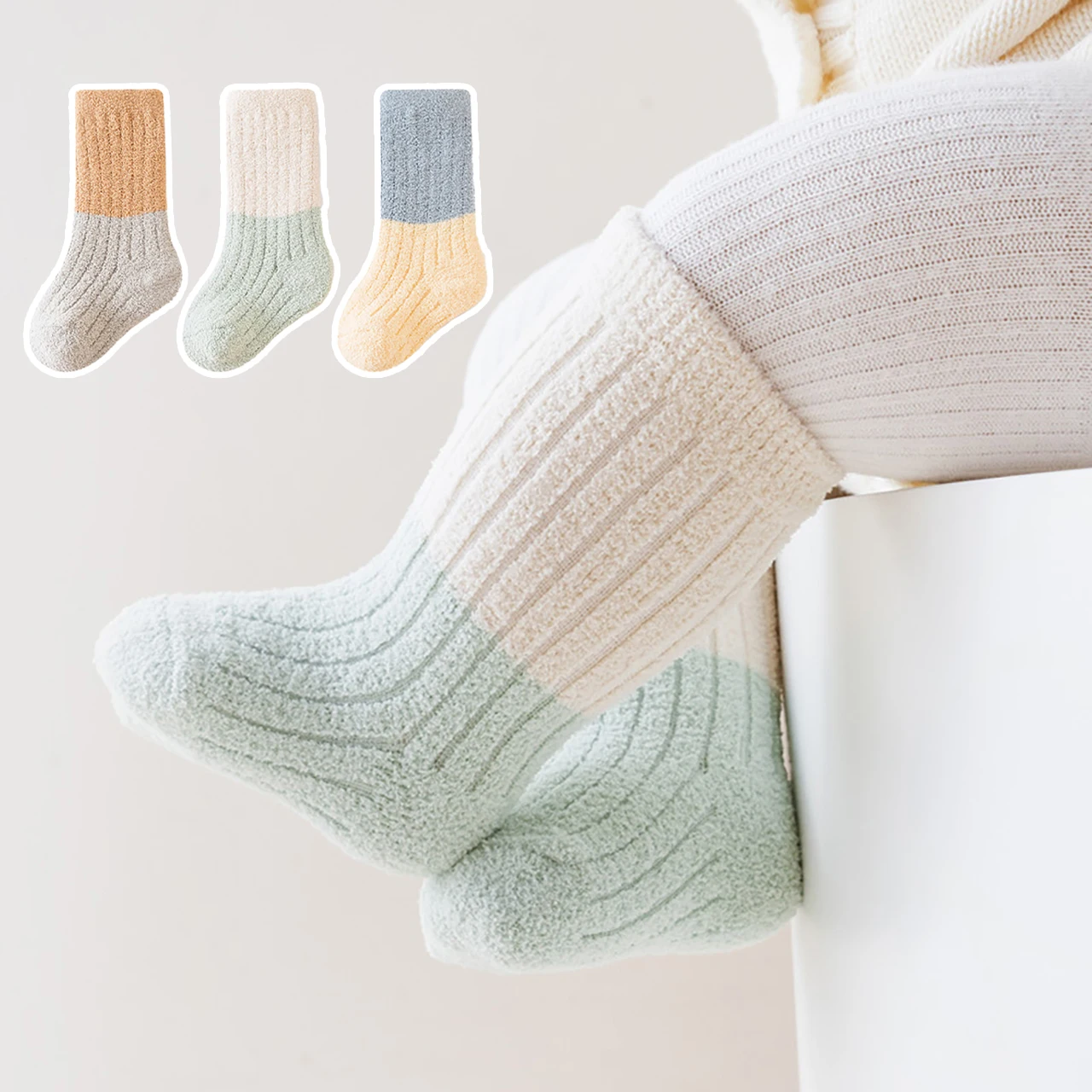 Soft Thermal Footwear | Color-Blocking Mid Tube Socks | Cozy Warmth for 0–3 Years Old
