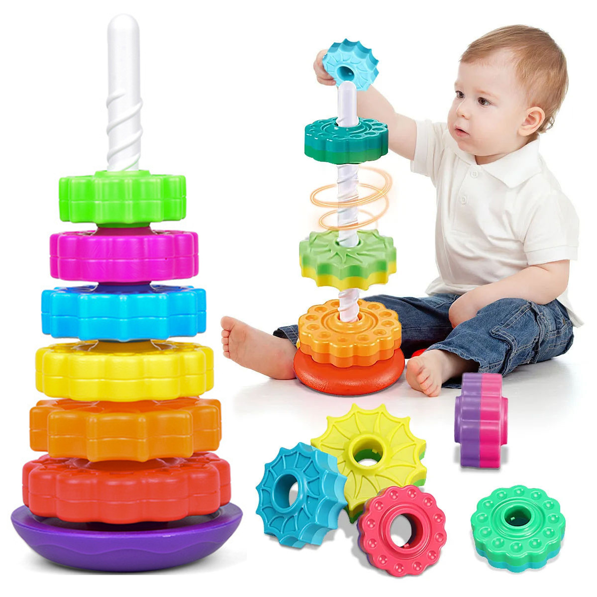 Ignite your child's curiosity and creativity with this innovative Montessori Rotating Rainbow Tower! Designed for children aged 1-3 years, this colorful stacking toy combines fun, learning, and endless play in one captivating package.